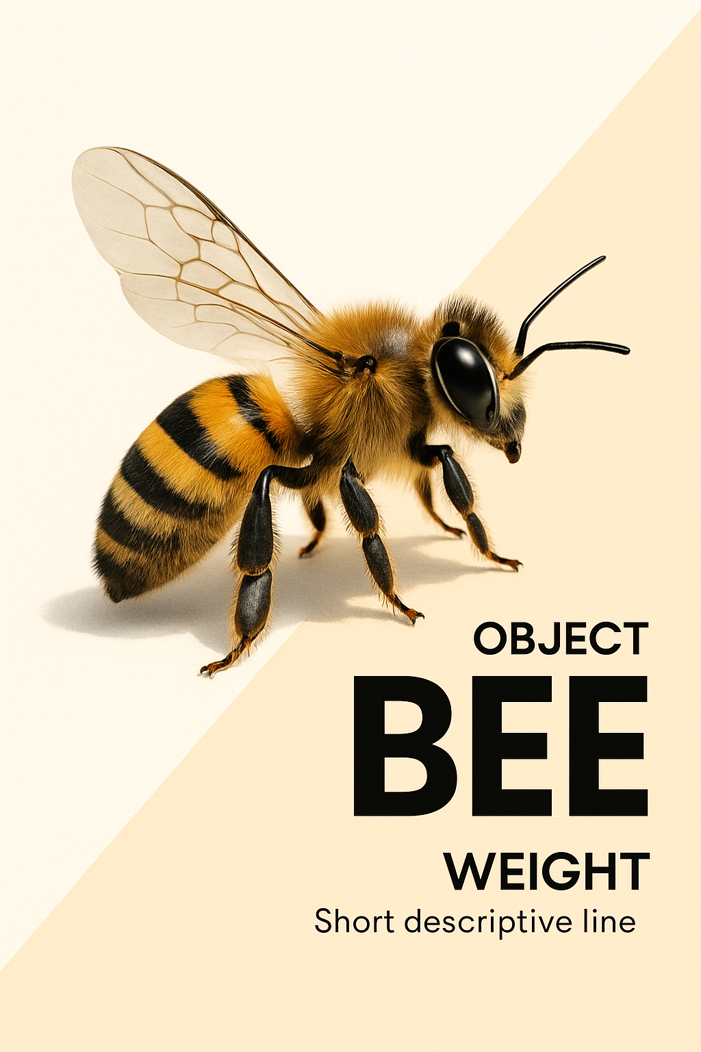 /Collection: /by davooda/Type: PNG/An artistic illustration of a small striped bee with transparent wings, set against a modern, two-tone background. The design features bold typography emphasizing the product's name.