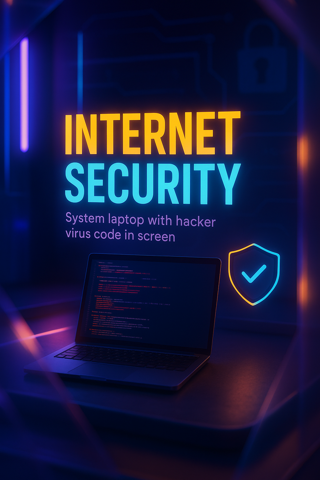 Digital Illustration of Internet Security Concept with Laptop and Code