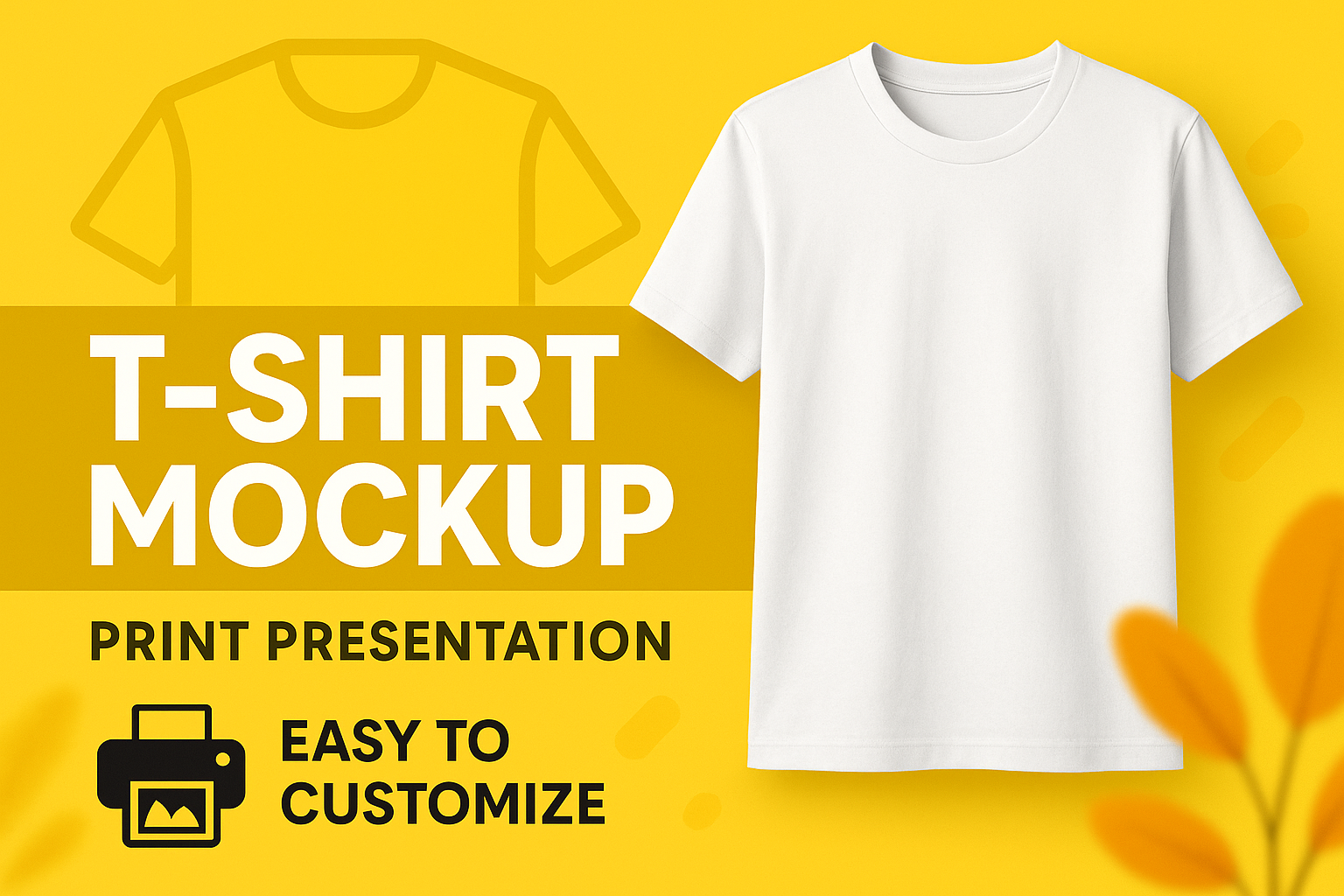 /Collection: /by davooda/Type: PNG/A clean and modern t-shirt mockup featuring a plain white shirt on a vibrant yellow background, ideal for showcasing designs for print presentations and customization.