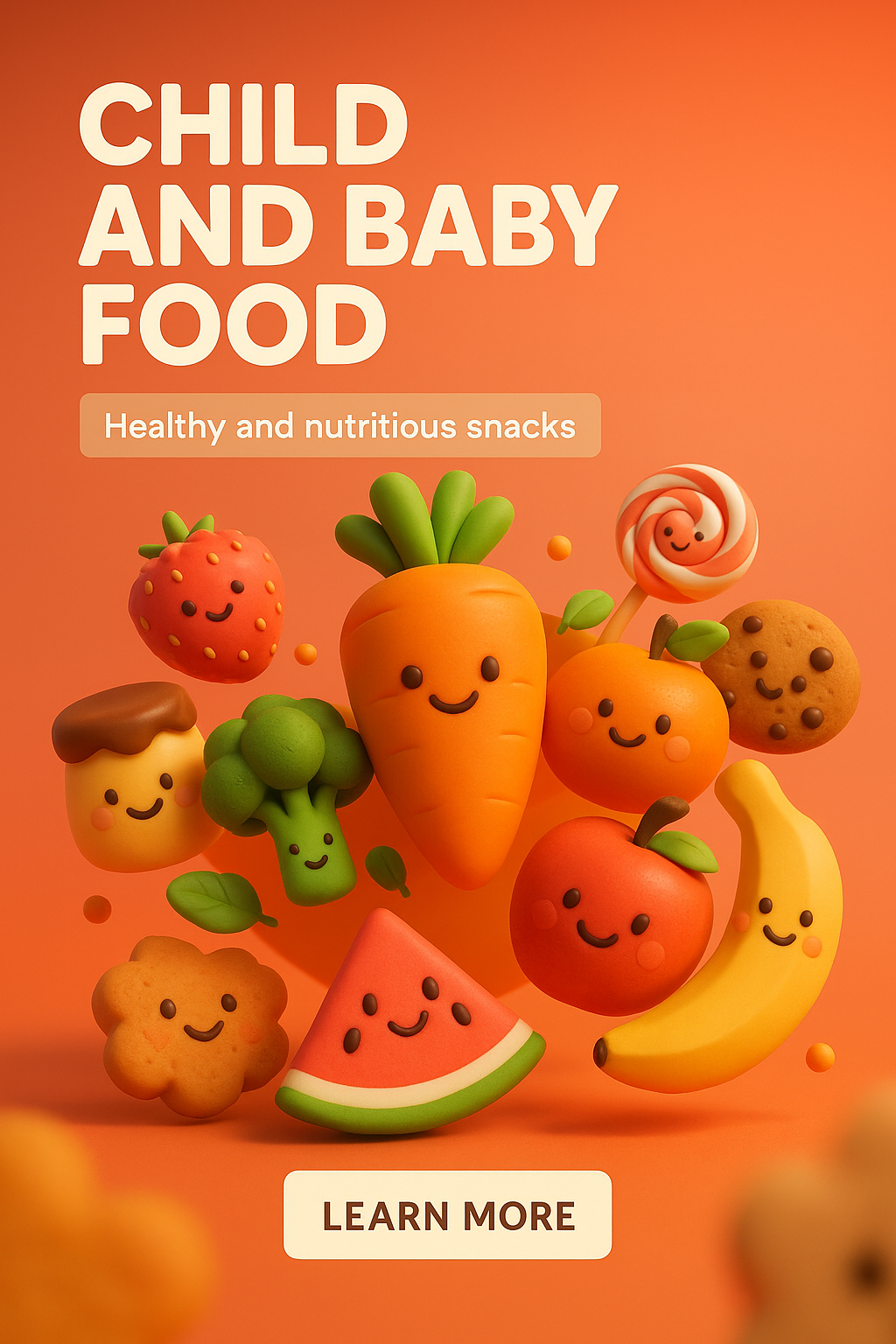 Colorful 3D Illustration of Healthy Snacks for Kids