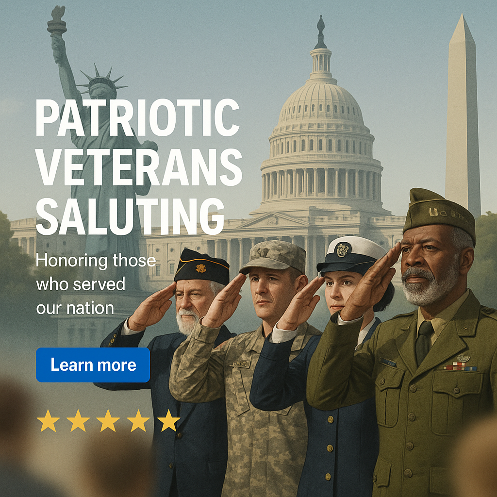 /Collection: /by davooda/Type: PNG/A patriotic tribute image showcasing veterans saluting in front of iconic U.S. landmarks, designed for commemorative purposes and honoring service members.