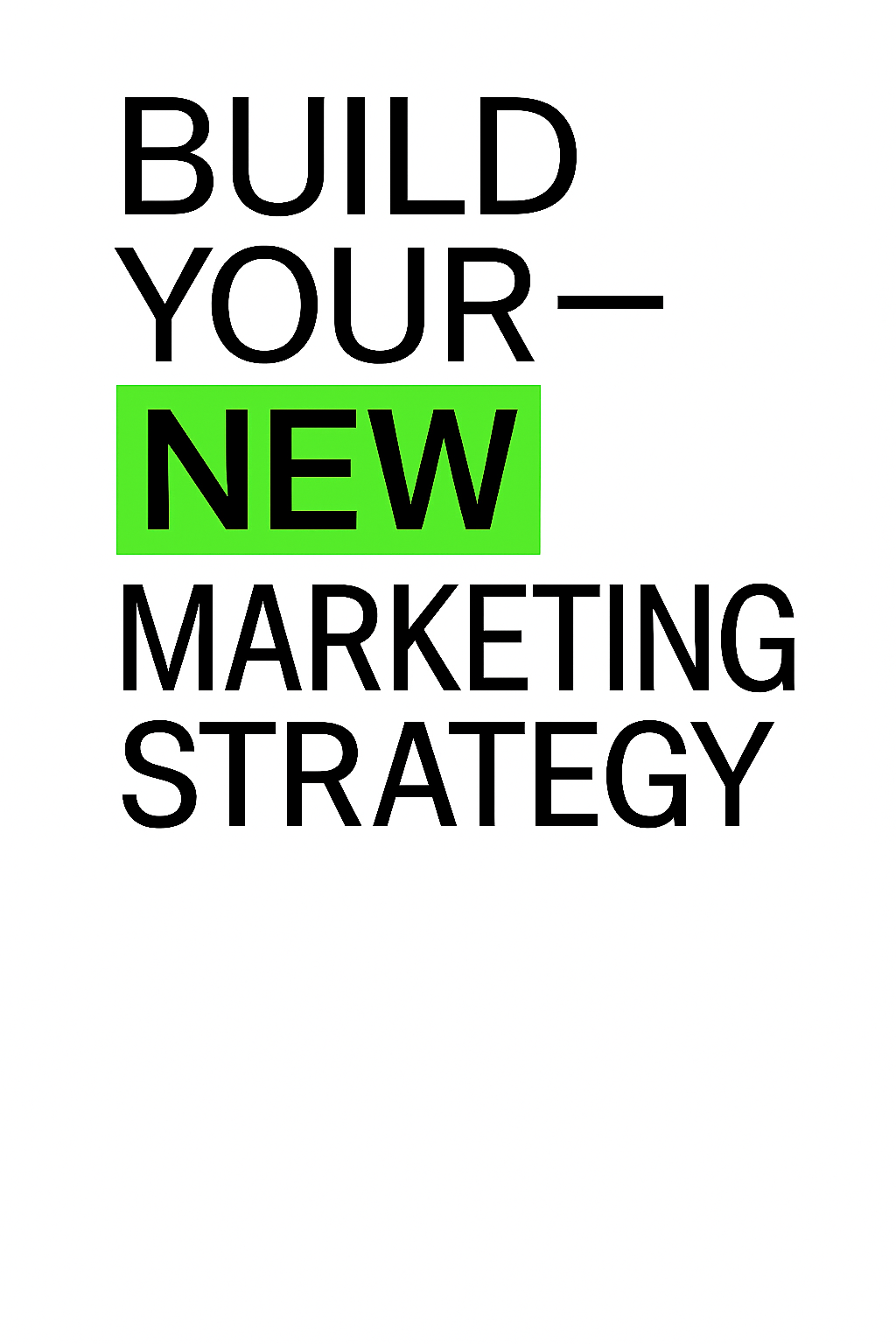 Minimalist graphic emphasizing a modern marketing strategy with bold typography and a striking color contrast, ideal for promotional materials.