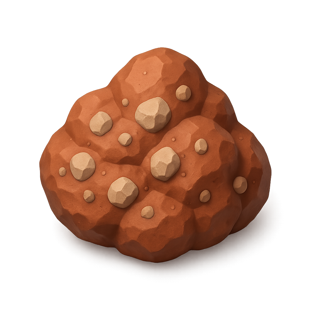 /Collection: /by davooda/Type: PNG/A detailed 3D icon representing bauxite, an aluminum ore, depicted in a three-quarter view. The icon features a textured, volumetric design on a transparent background.