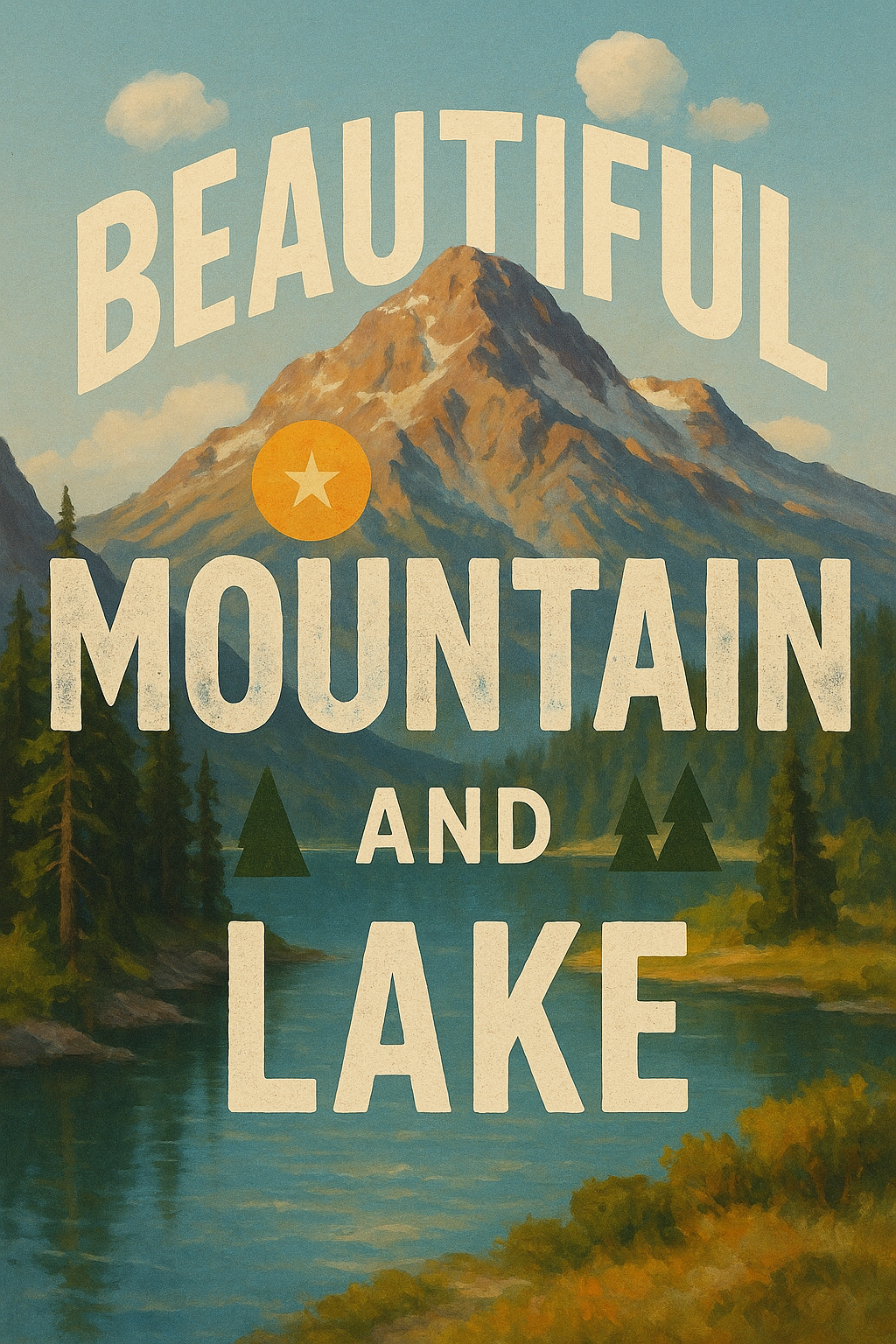 Artistic Landscape Poster Featuring Mountains and Lake