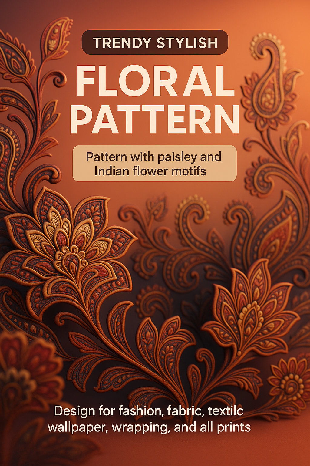 /Collection: /by davooda/Type: PNG/This is a digital graphic featuring a stylish floral pattern with paisley and Indian motifs, ideal for textile design, wallpapers, and various print applications.