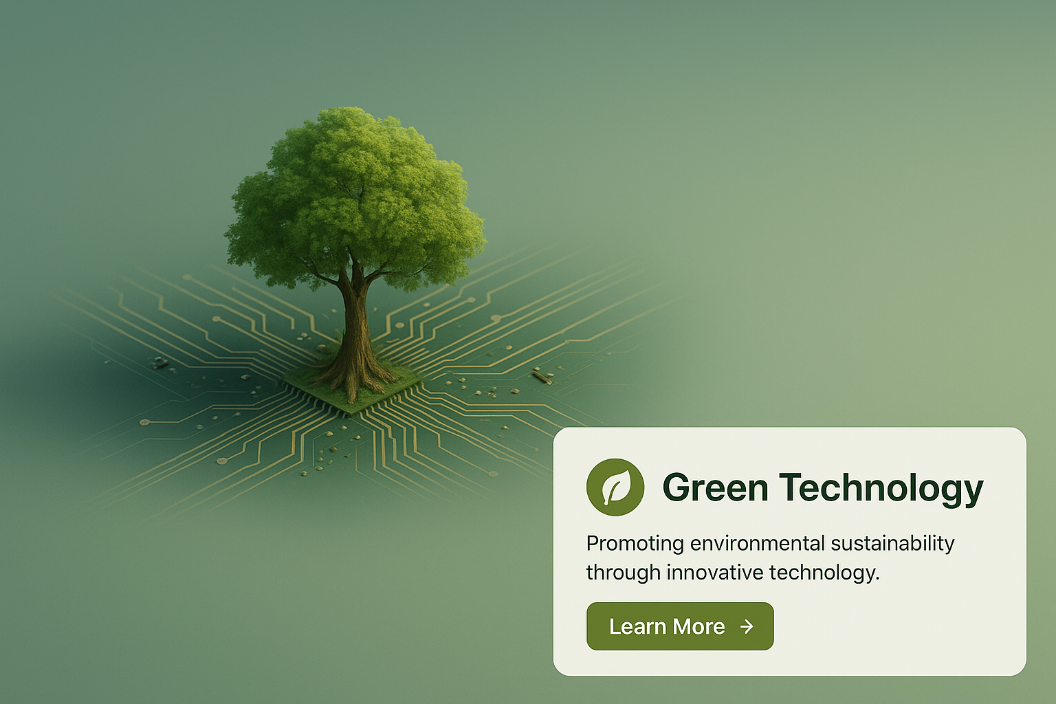 /Collection: /by davooda/Type: PNG/A visually striking 3D scene featuring a tree growing at the intersection of a computer circuit board. This image symbolizes green technology and environmental sustainability.