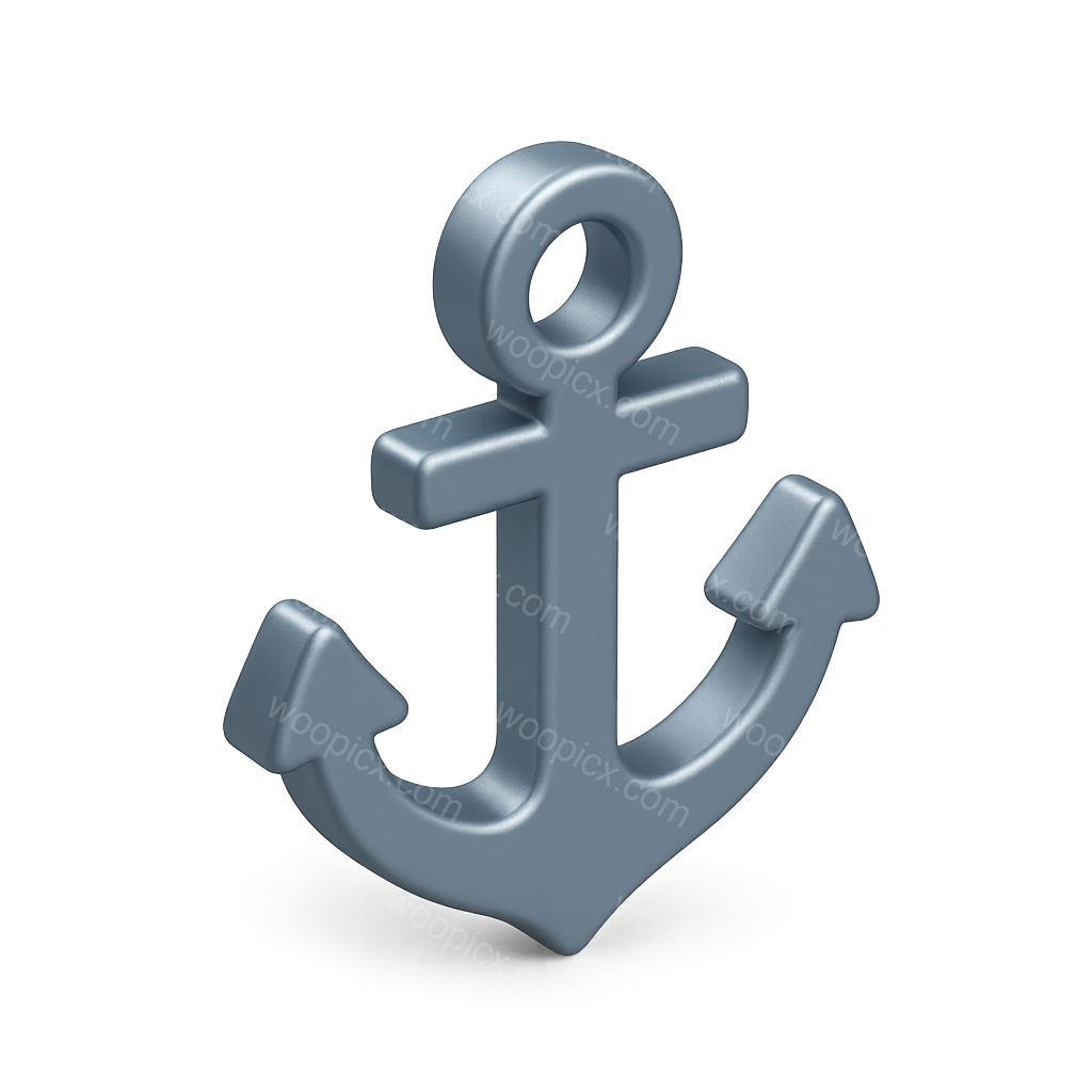 A sleek, stylized 3D anchor icon viewed from a three-quarter angle, featuring a metallic finish and soft lighting effects. The design is isometric and volumetric, set against a subtle gradient background.