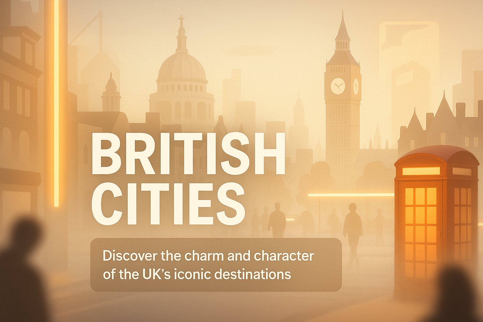 A visually appealing illustration capturing the essence of iconic British cities, featuring soft colors and a dreamy atmosphere. Ideal for travel promotions or cultural content.