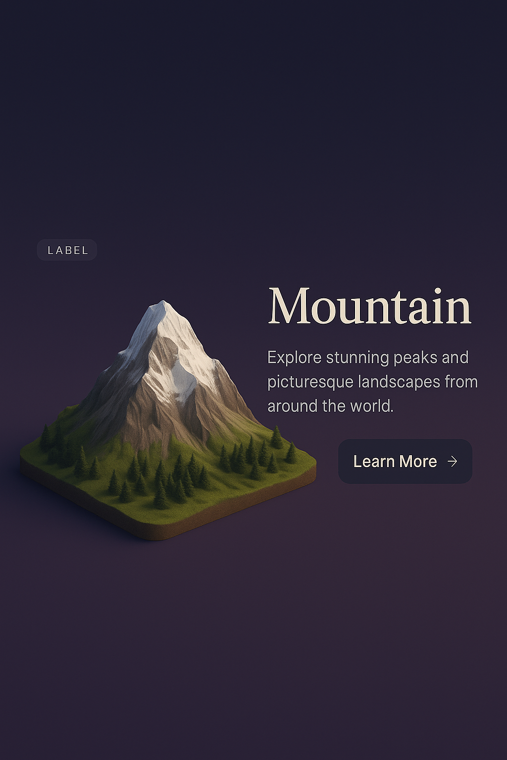 /Collection: /by davooda/Type: PNG/A beautifully designed 3D mountain scene featuring a textured landscape. The background transitions from dark to a smooth gradient, enhancing the realism of the peaks and surroundings.