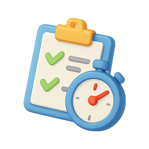 /Collection: /by davooda/Type: PNG/Colorful 3D graphic featuring a checklist with checkmarks and a stopwatch, ideal for themes of time management and productivity. Great for educational or motivational content.
