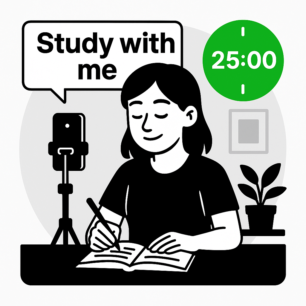 A simple and engaging illustration depicting a person studying with a timer, ideal for promoting focused study sessions or productivity content.