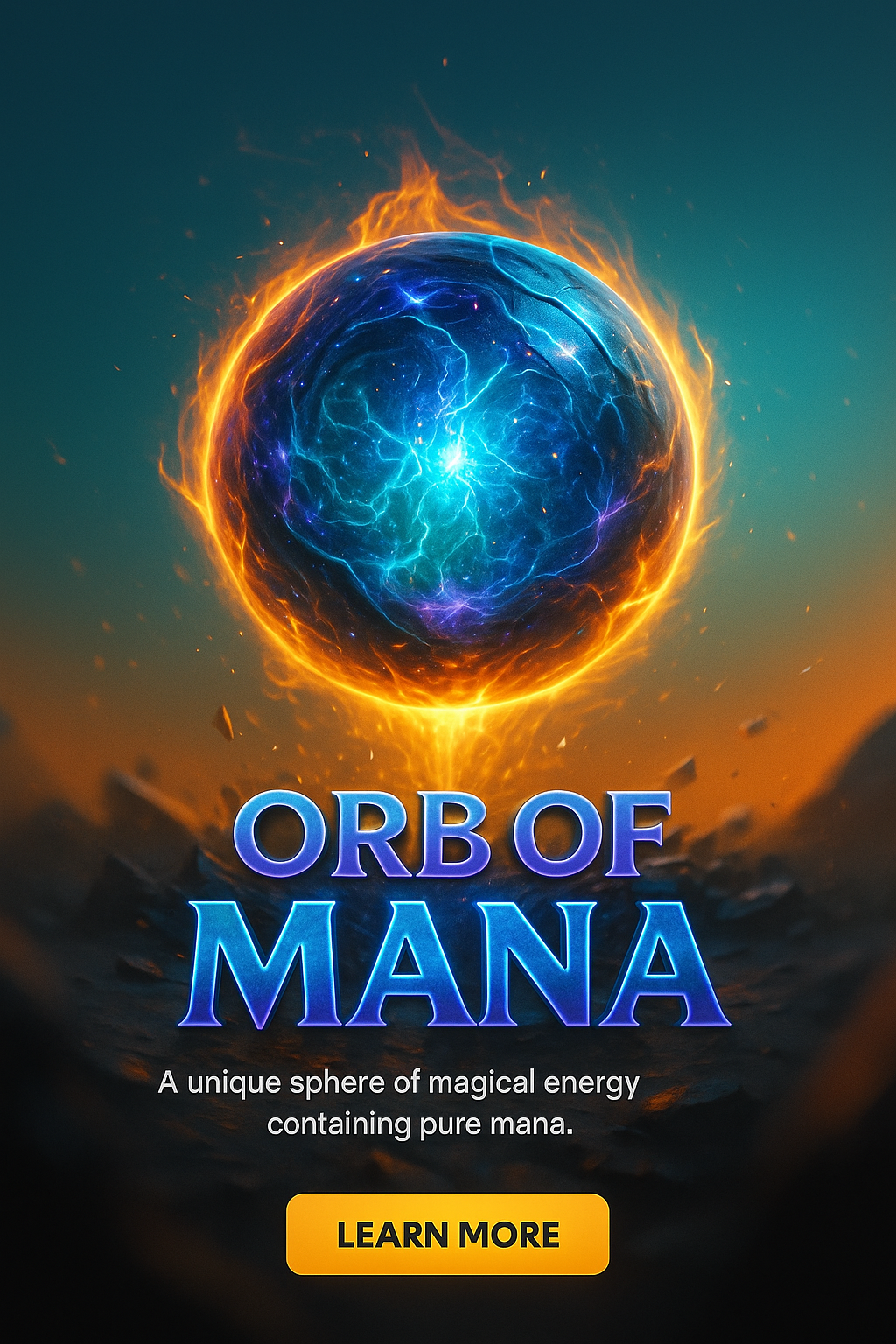 A visually striking orb of mana radiates magical energy, surrounded by a vibrant backdrop. The text highlights its unique qualities, inviting viewers to learn more.