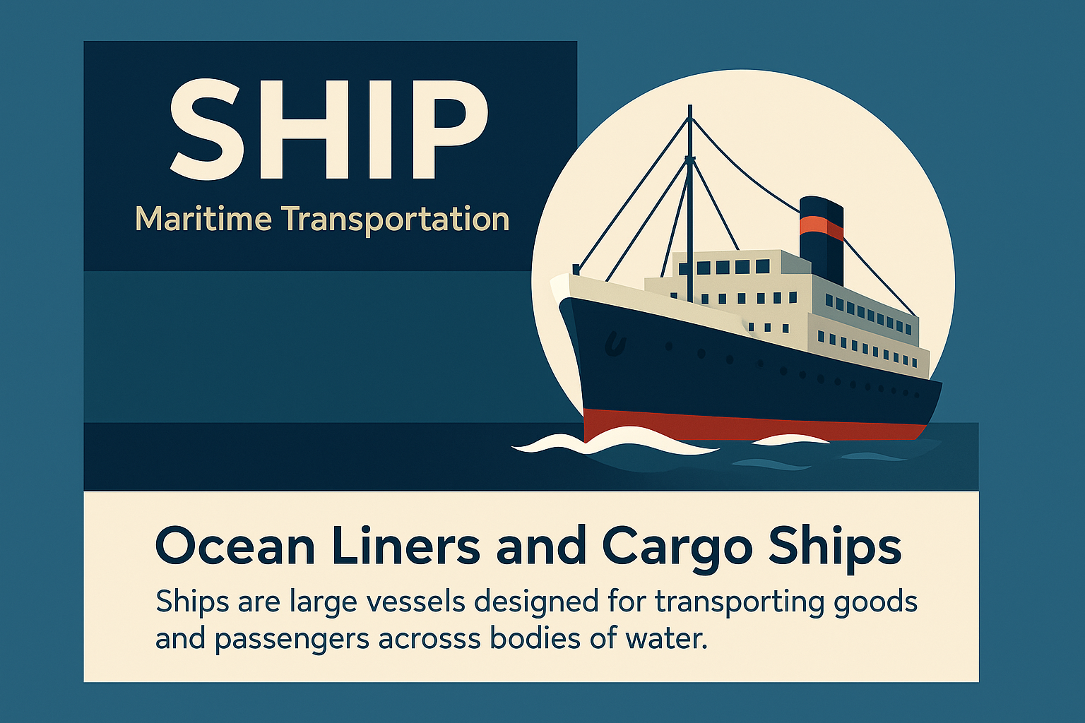 A graphic depicting a stylized ship with a layered composition, featuring a geometric shape and a professional aesthetic. The color scheme is three-tone, promoting maritime transportation.