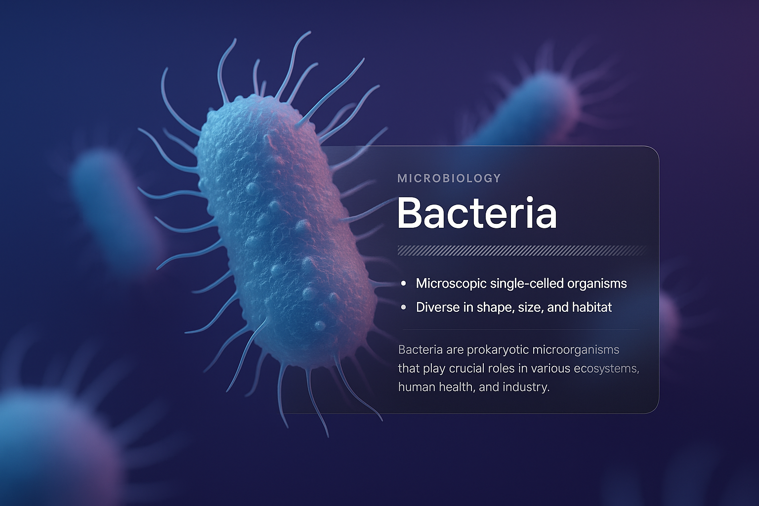 /Collection: /by davooda/Type: PNG/A visually striking 3D illustration of bacteria, showcasing their diverse shapes and textures against a smooth gradient background. The design features informative text elements integrated seamlessly.