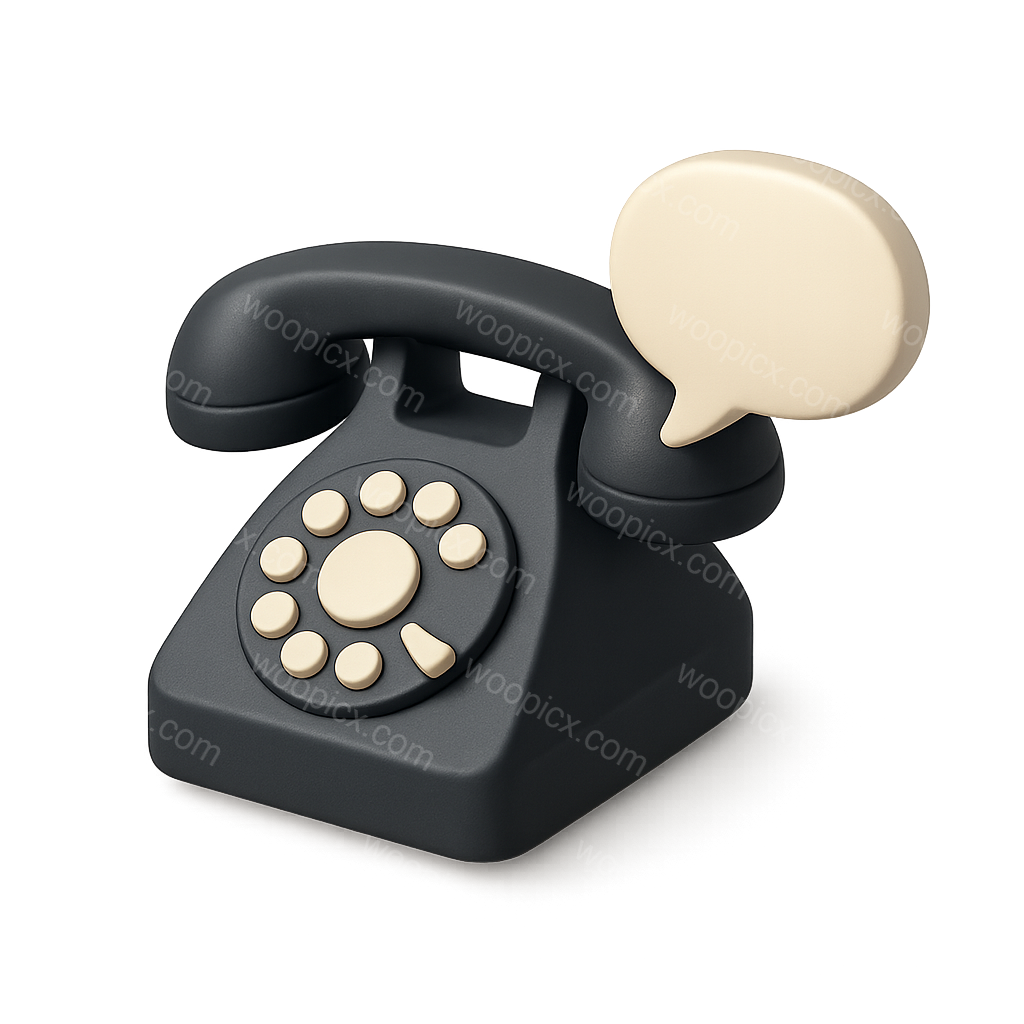 A sleek 3D telephone icon featuring a classic design with a speech bubble. The phone is shown in a three-quarter view, exuding a modern and volumetric appearance.