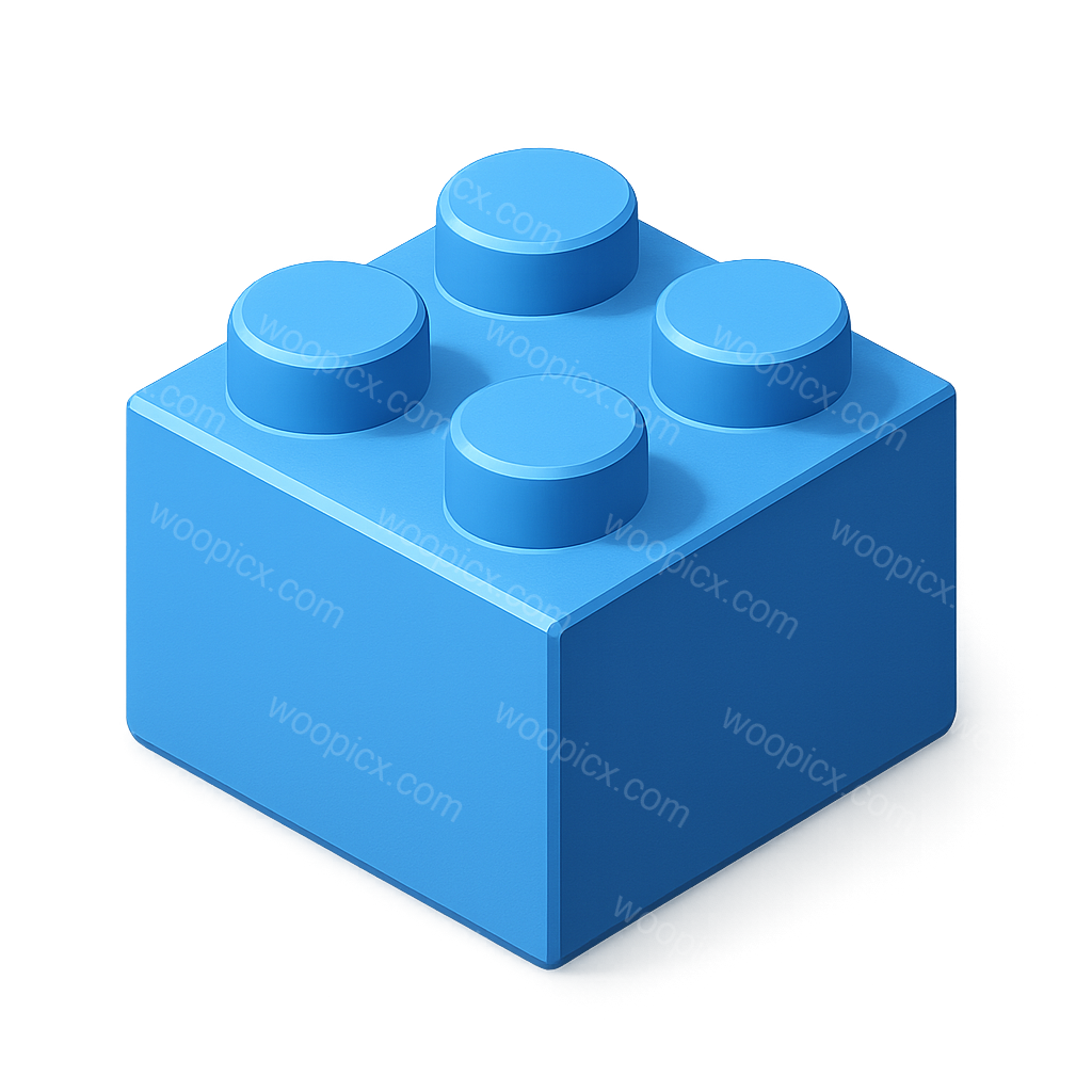 /Premium/Collection: /by davooda/Type: PNG/A sleek, blue 3D building block icon is presented in a three-quarter isometric view. The block features four circular studs on top and has a smooth, shiny surface against a gradient background.