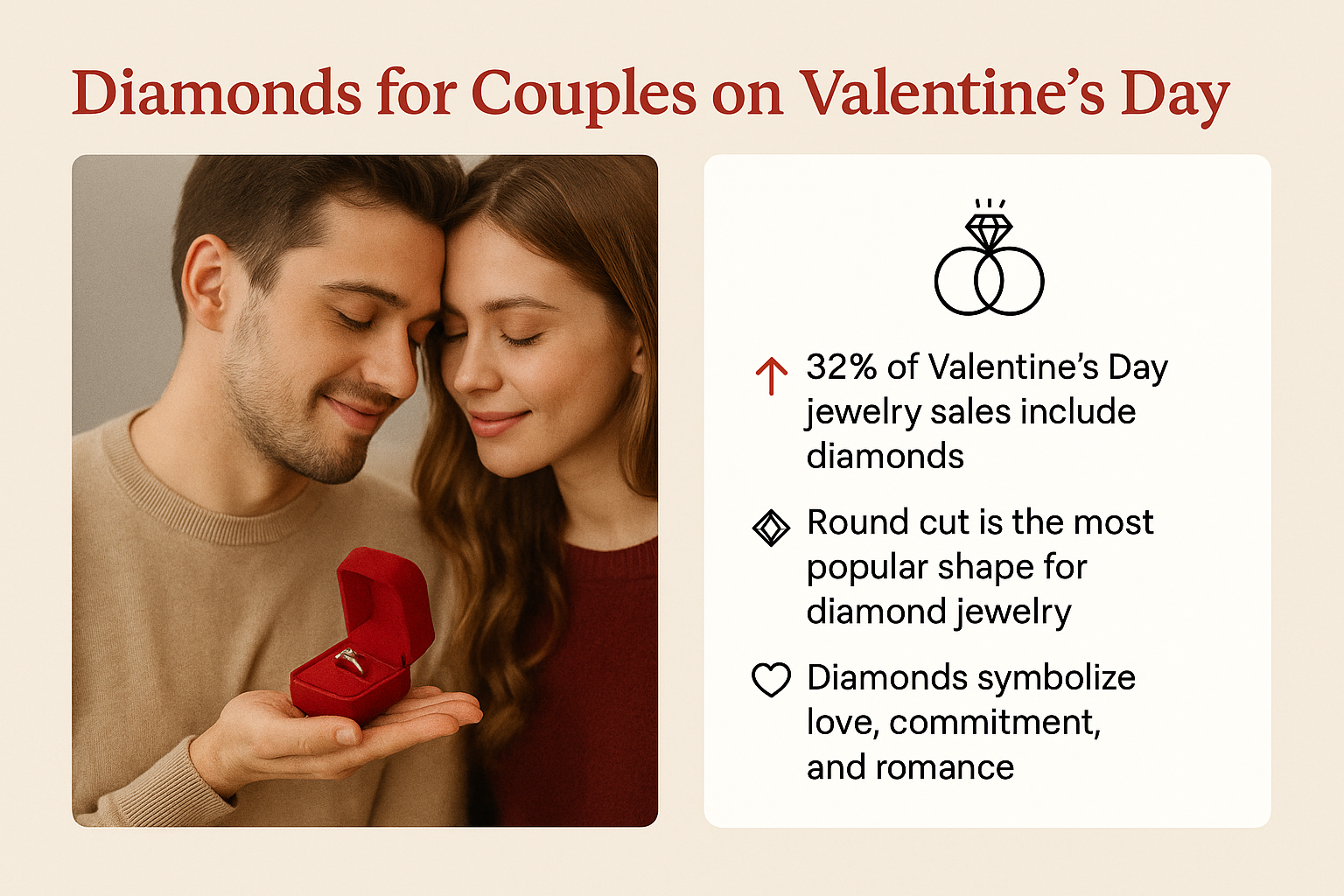 Valentine's Day Jewelry Promotion Featuring Couples and Diamonds