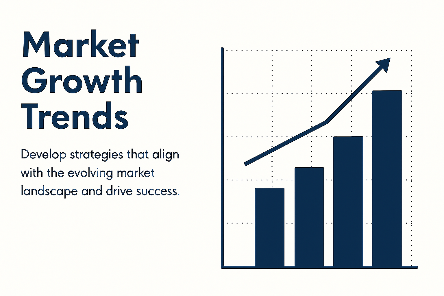 /Collection: /by davooda/Type: PNG/Informative infographic illustrating market growth trends with a graph and strategic insights for business development. Suitable for presentations and reports.