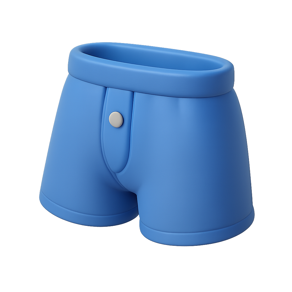A visually appealing 3D icon of blue boxer shorts, featuring a rounded waistband and a button detail. The shorts are depicted in a three-quarter view with a soft, volumetric look against a dark background.