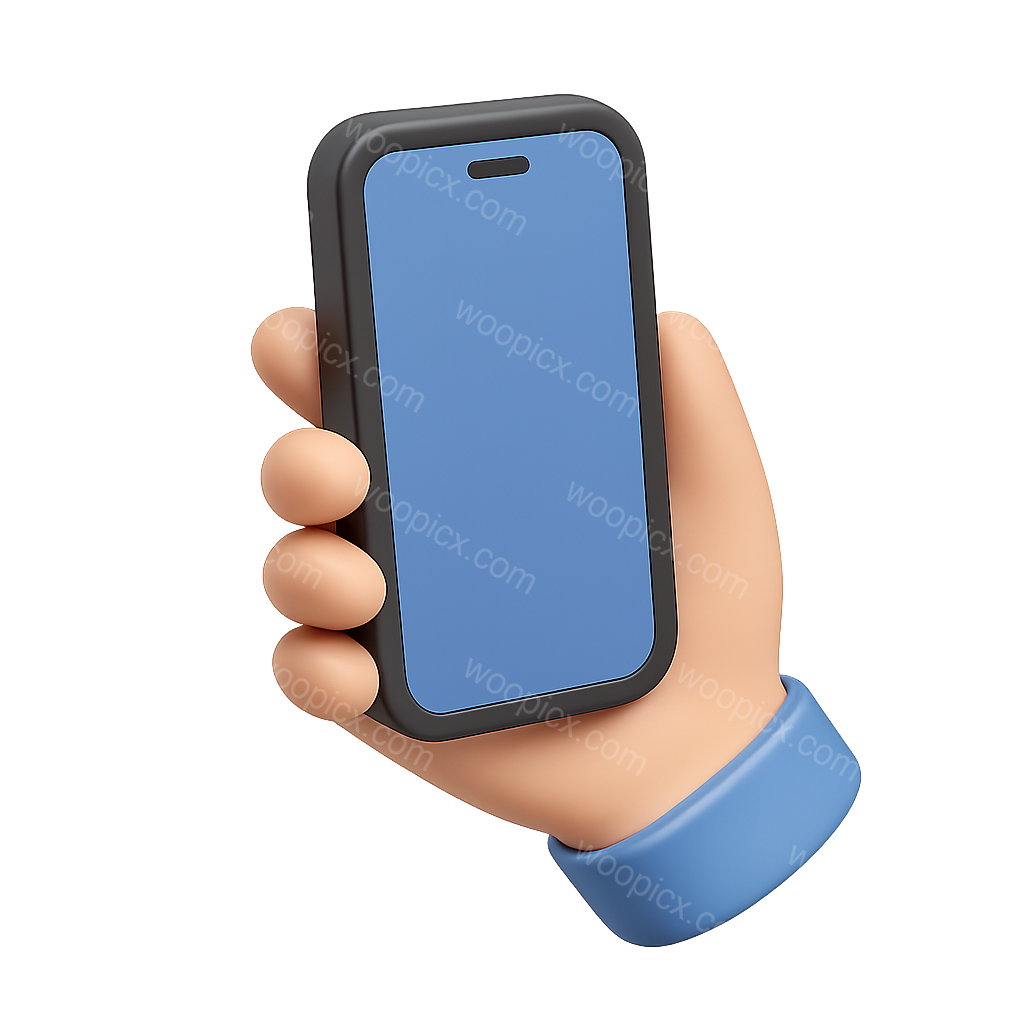 A stylized 3D icon of a smartphone held in a hand, showcasing a simple design with a transparent background. The smartphone features a blue screen and a black frame, viewed from a three-quarter angle.