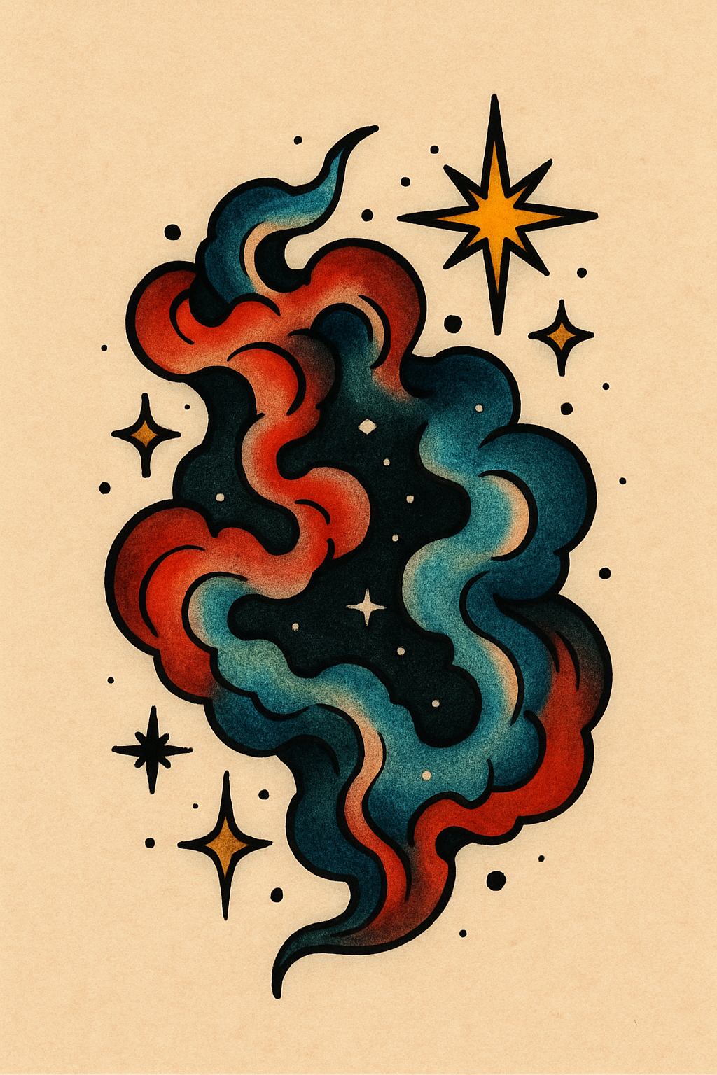 Cosmic Themed Graphic Featuring Space Nebula and Galaxy