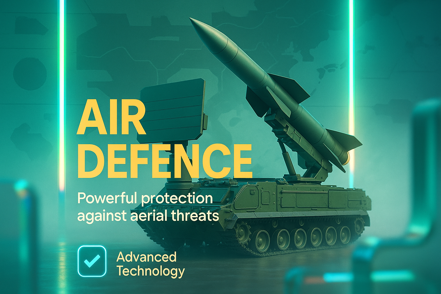 A visually striking 3D render of an air defence system, highlighting advanced technology in a futuristic design. Ideal for military or tech-related marketing.