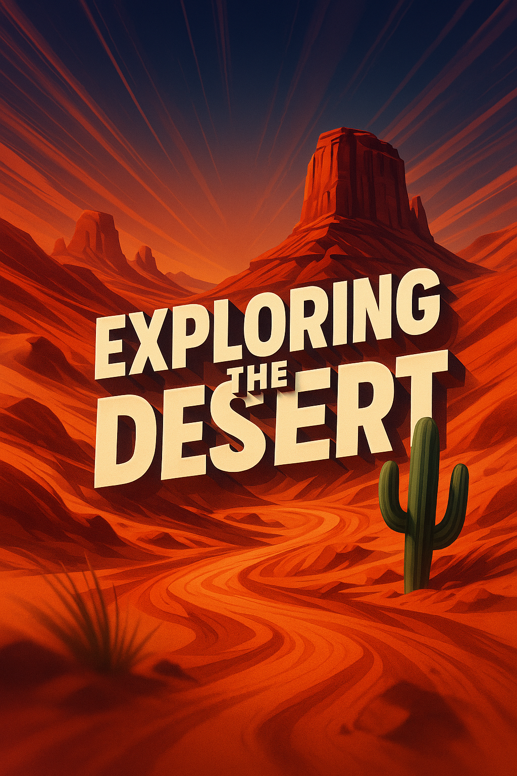 Dynamic Illustration of a Desert Landscape with Bold Typography