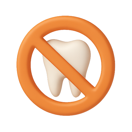 A graphic representation of a prohibition symbol featuring a tooth, designed to convey dental health messages. Ideal for dental care campaigns or educational materials.