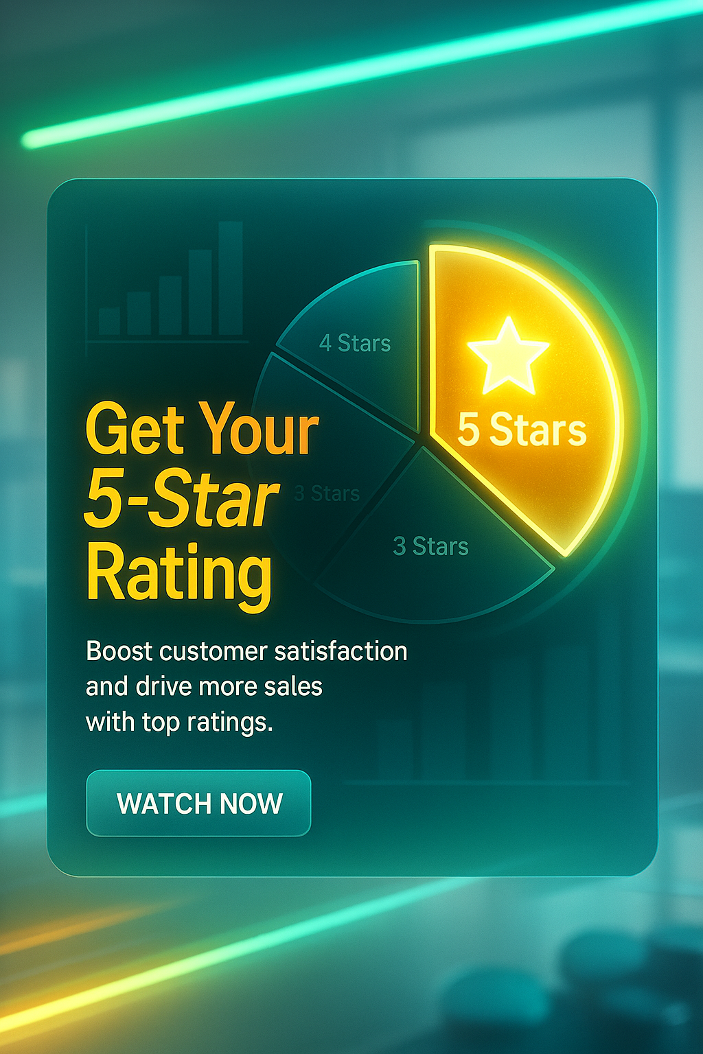 Engaging promotional graphic designed to encourage businesses to improve customer ratings. Features a visually appealing star rating chart and a call to action.
