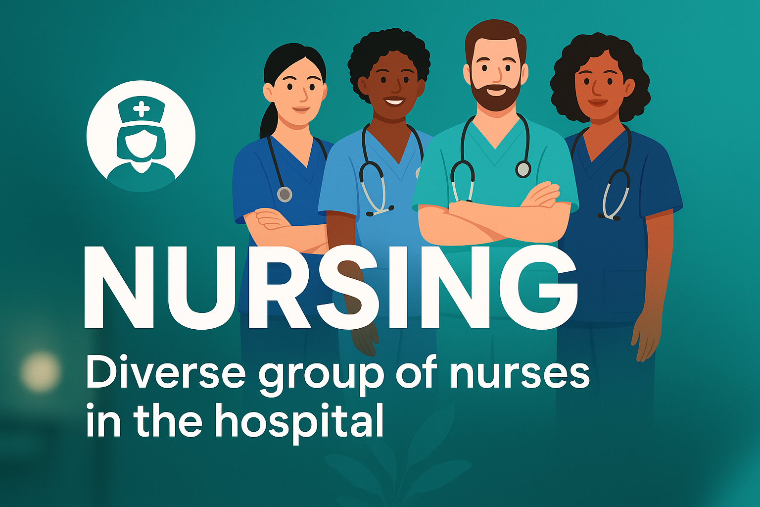 A vibrant illustration depicting a diverse group of nurses in a hospital environment, ideal for healthcare-related content or educational materials.