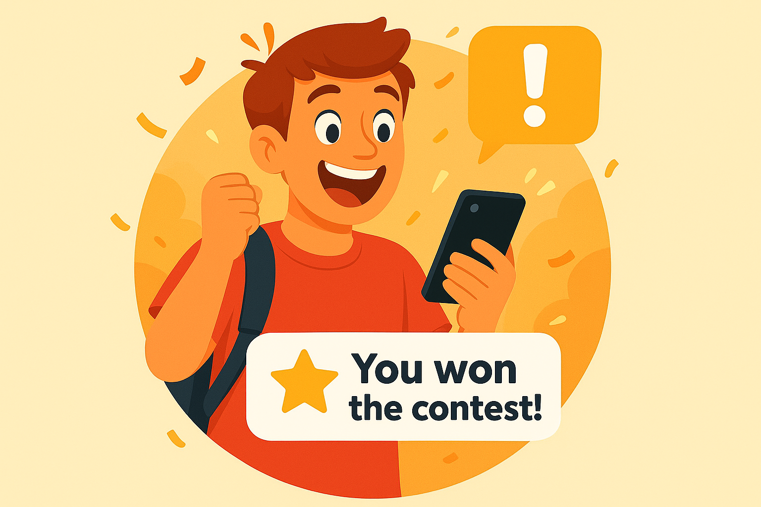 Vibrant illustration depicting a joyful character celebrating a contest win, ideal for promotional materials or social media posts aimed at engaging audiences.