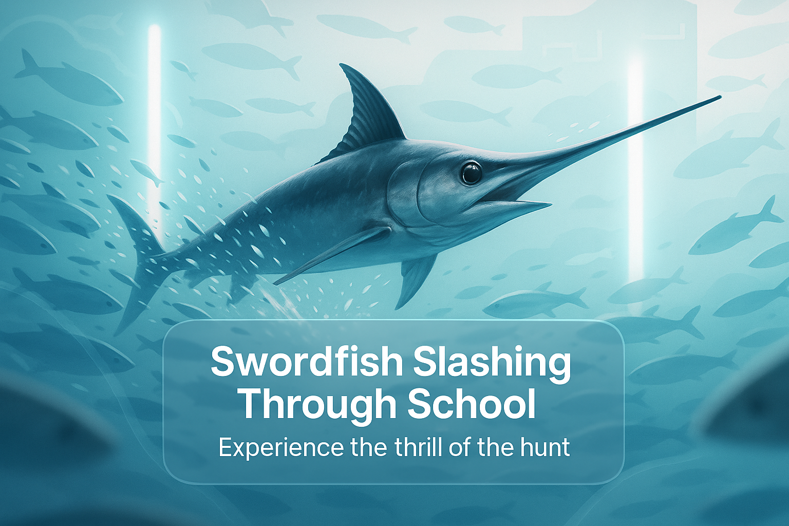 Dynamic Underwater Scene Featuring Swordfish Hunting