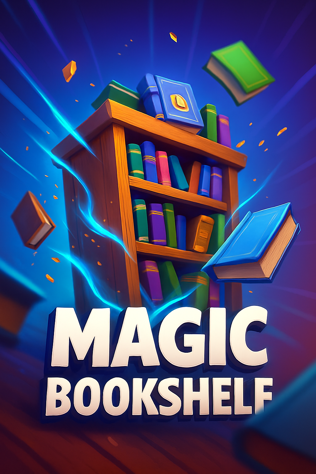 Dynamic Magic Bookshelf Illustration with Vibrant Colors