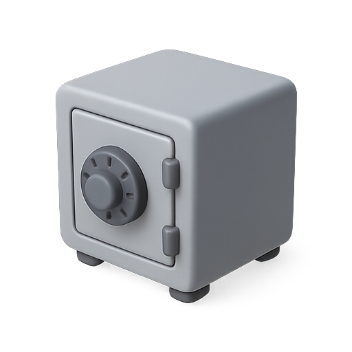 A minimalist 3D representation of a gray safe featuring a dial lock. This graphic is suitable for financial or security-related themes in digital media.