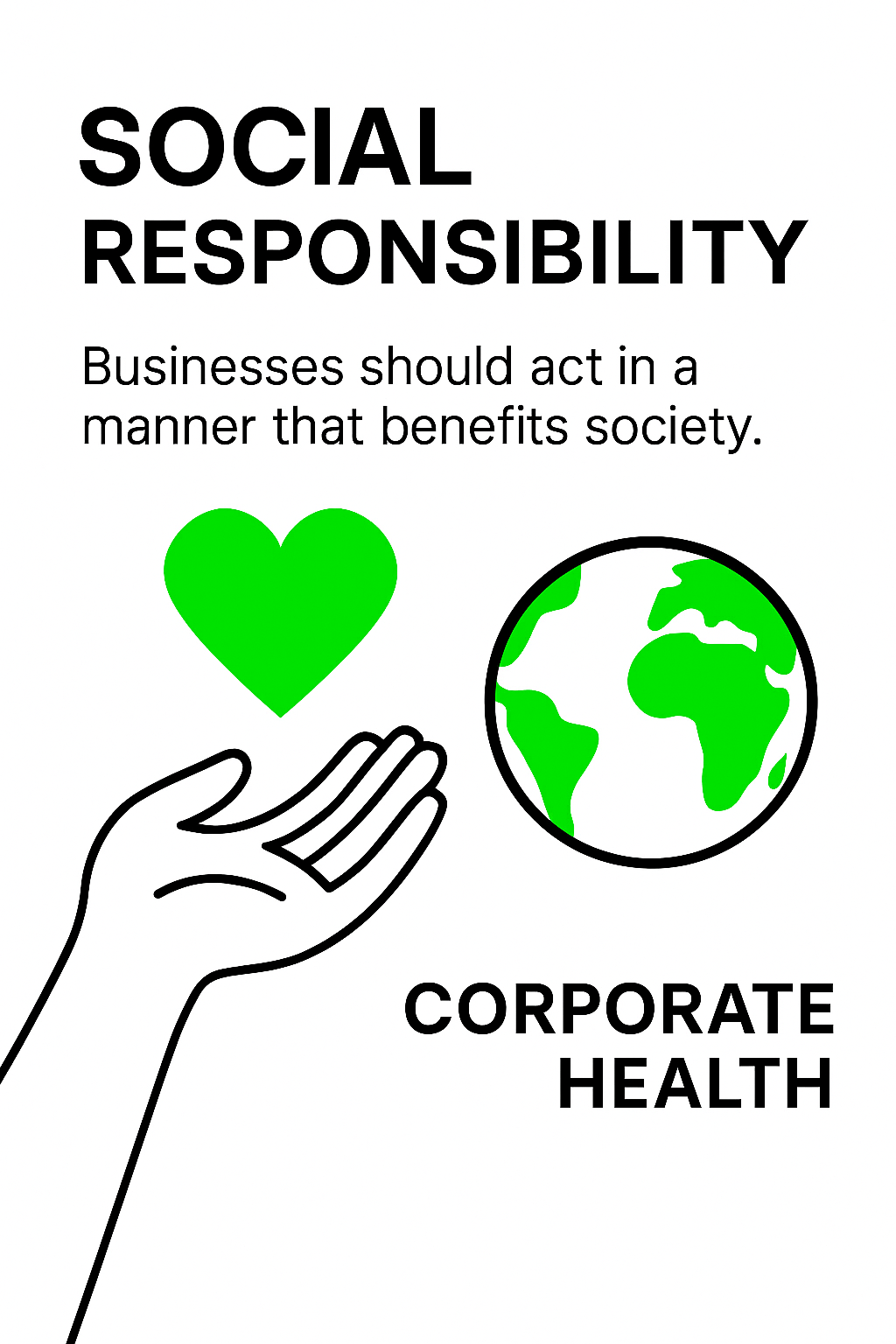 /Collection: /by davooda/Type: PNG/Minimalist infographic highlighting the concept of social responsibility in business, featuring simple illustrations and a clean design ideal for corporate health discussions.