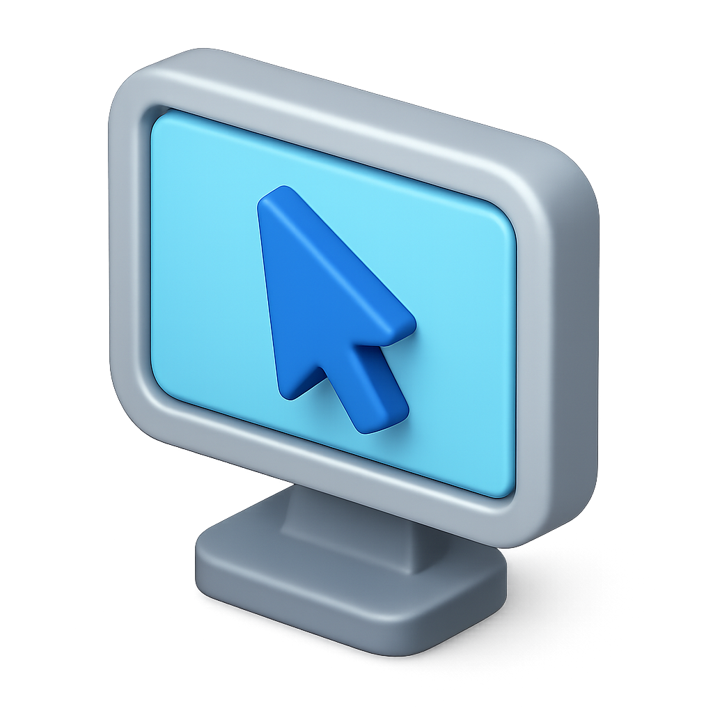 3D Icon of Computer Screen with Cursor Click