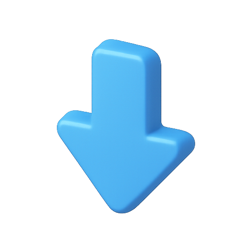 A stylized 3D blue downward arrow icon designed with smooth edges, suitable for digital applications and UI design. Ideal for indicating movement or direction.