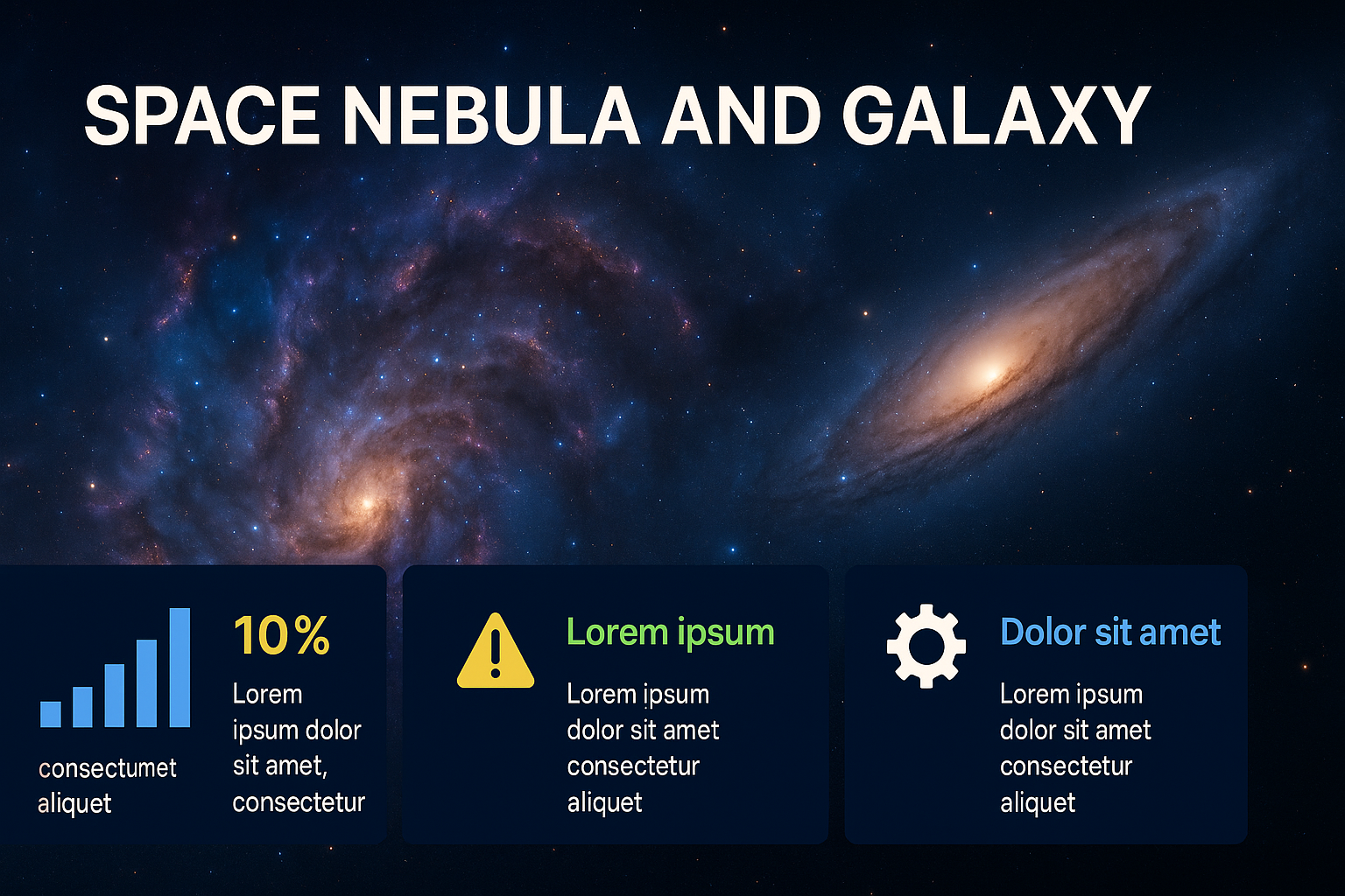 Engaging infographic showcasing a space nebula and galaxy with data representation. Ideal for educational content or presentations in astronomy.