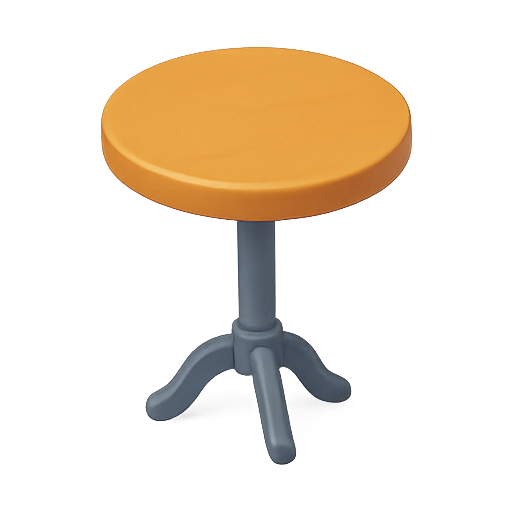 A modern, minimalist round table featuring a vibrant orange tabletop and a sleek blue pedestal base, ideal for contemporary interior design projects.