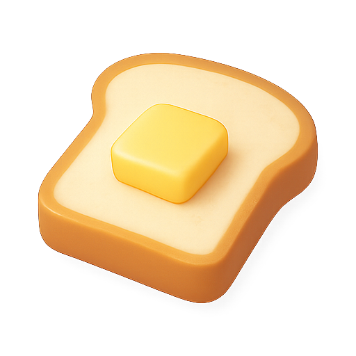 /Collection: /by davooda/Type: PNG/A stylized depiction of a slice of bread topped with a square of butter, emphasizing a playful and simplistic design. Ideal for culinary-themed graphics or food-related content.