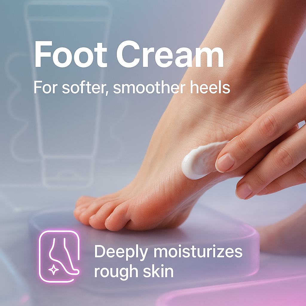 Promotional Foot Cream Product Image with Soft Skin Focus