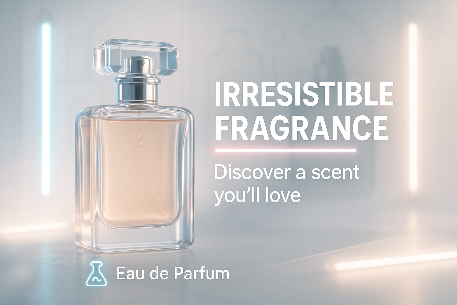 /Collection: /by davooda/Type: PNG/Stylish promotional banner showcasing a luxurious perfume bottle with a modern aesthetic, featuring soft lighting and a clean design suitable for fragrance marketing.