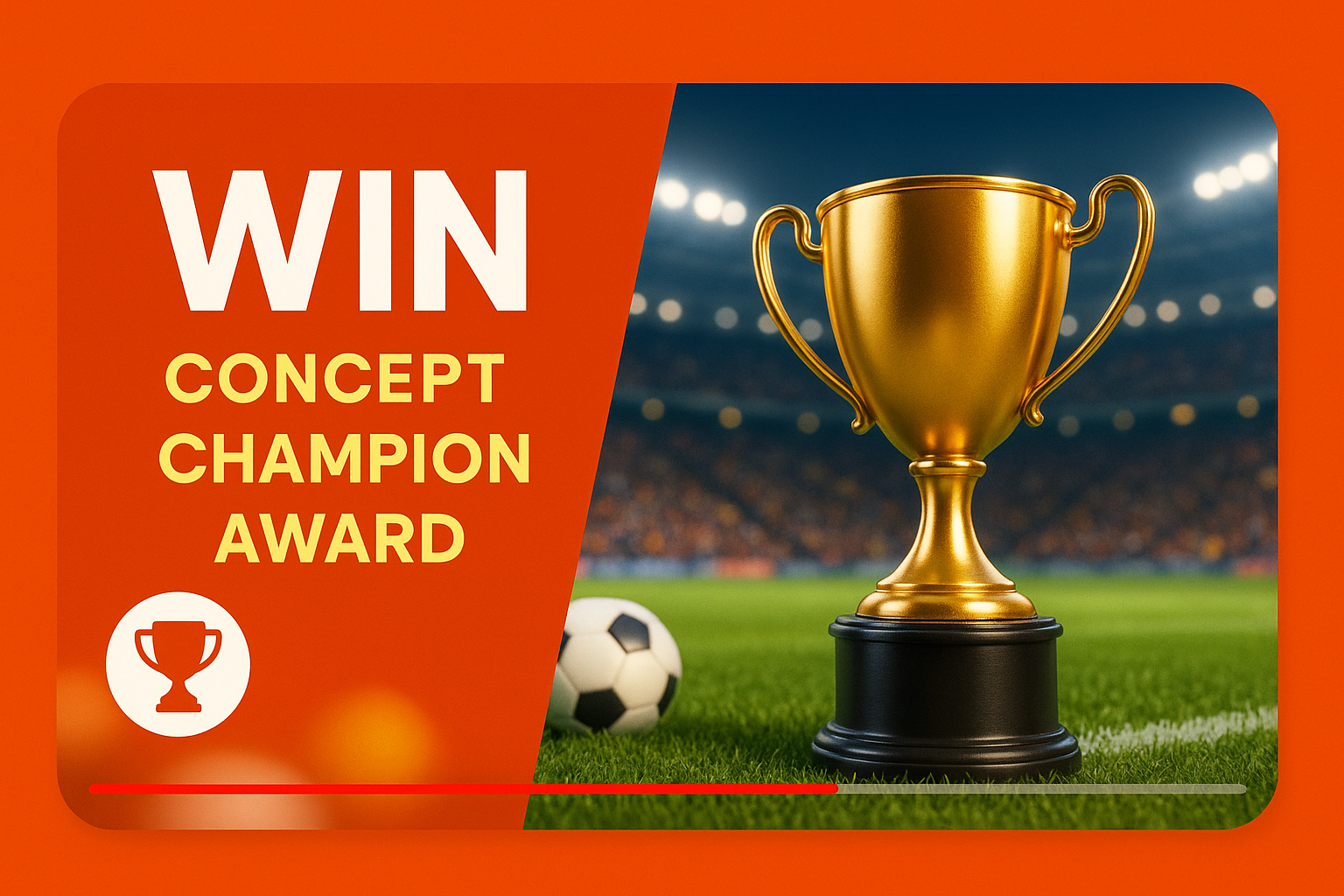 Award Promotion Graphic Featuring Trophy and Soccer Elements