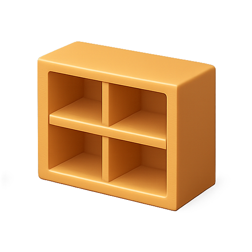 Contemporary storage shelf featuring a sleek design with four compartments, ideal for organizing items or displaying decor. Perfect for modern interior spaces.