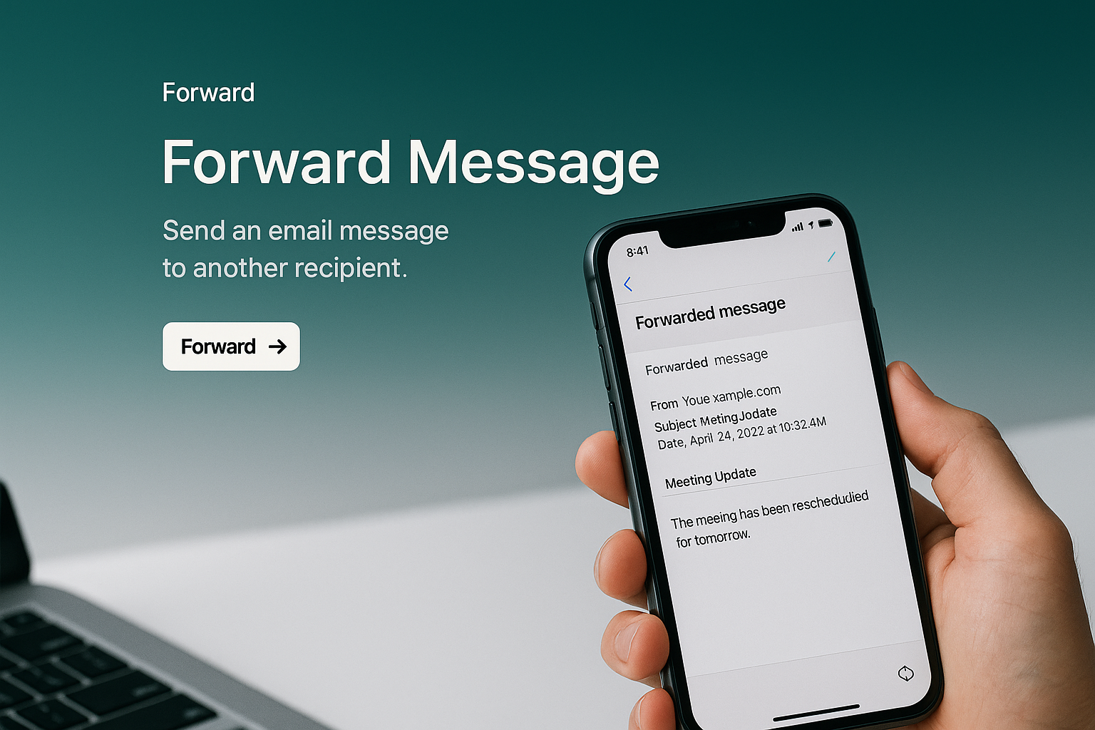 /Collection: /by davooda/Type: PNG/A stylish web page mockup featuring a mobile phone displaying an email forwarding message. The design includes a gradient background and a clear call-to-action button.
