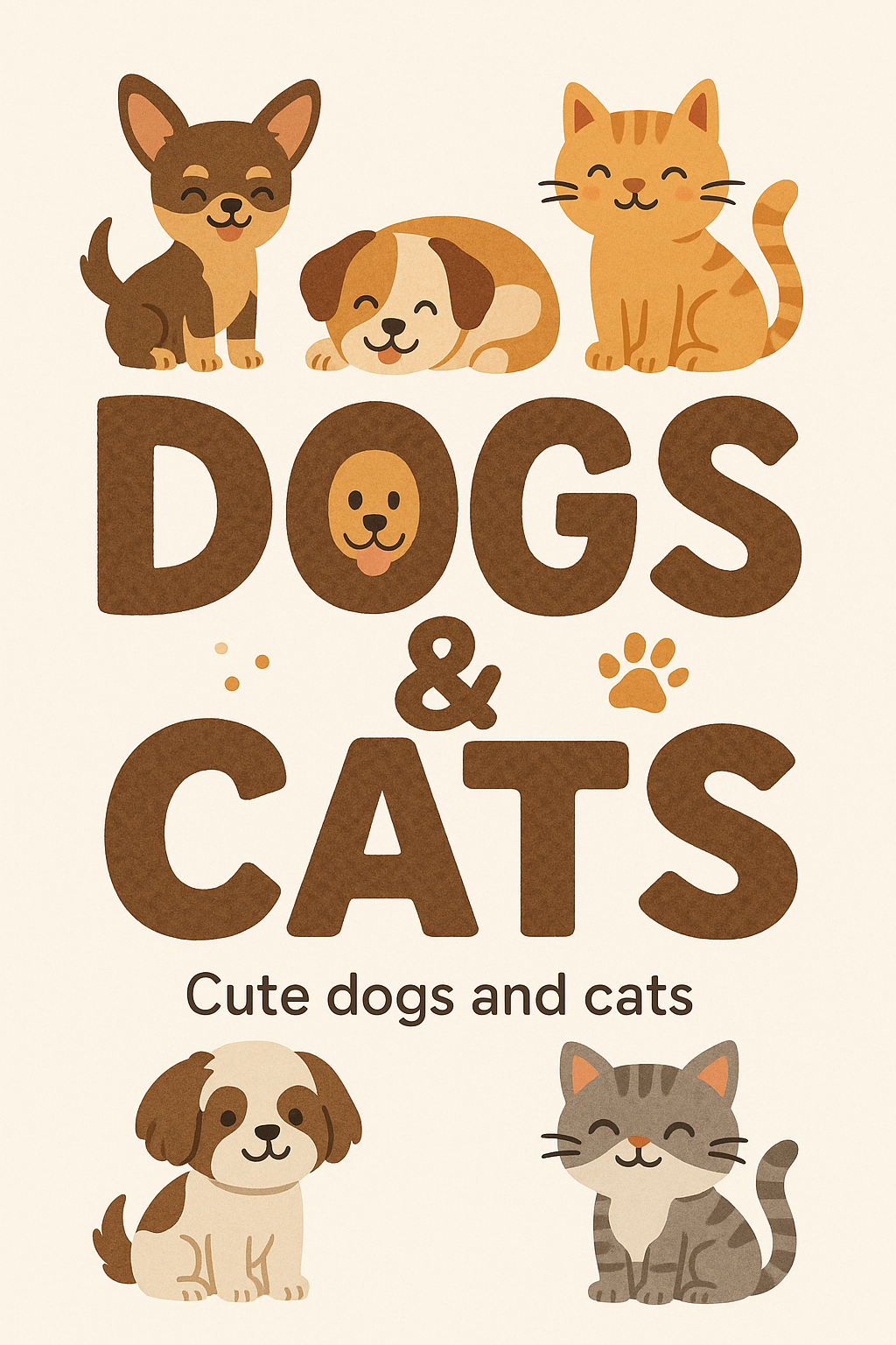 Charming graphic featuring adorable cartoon dogs and cats, ideal for children's products, pet-related content, or animal-themed marketing materials.