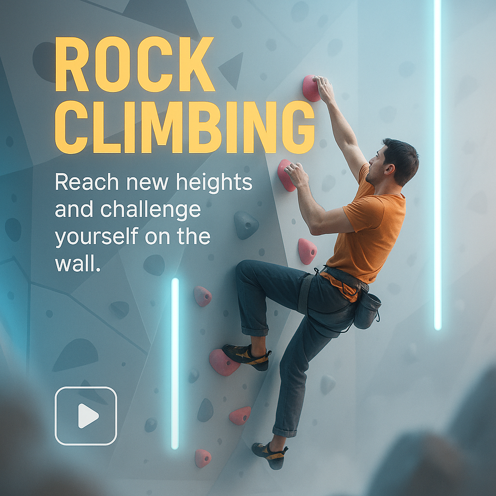 A vibrant promotional graphic showcasing a rock climber in action, designed to inspire adventure enthusiasts. Ideal for social media marketing or event promotions.