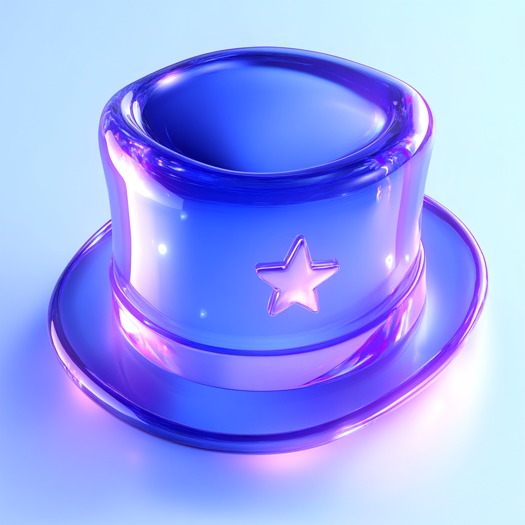 A visually striking 3D render of a glass top hat featuring a star emblem, designed with a modern aesthetic and vibrant colors. Ideal for creative projects and branding.