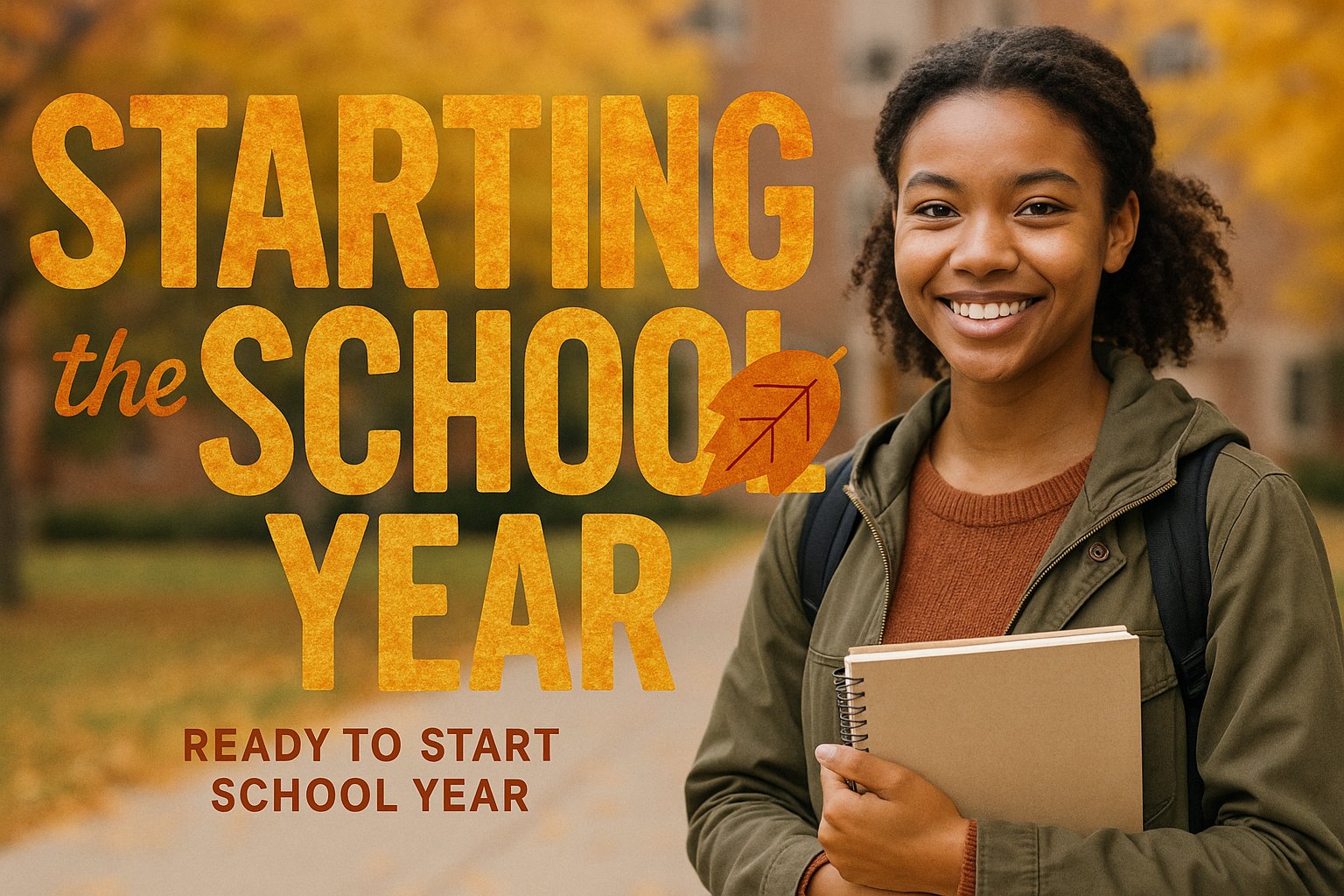 Warm and inviting back-to-school promotional image featuring a smiling student holding books, ideal for educational marketing and school-related campaigns.