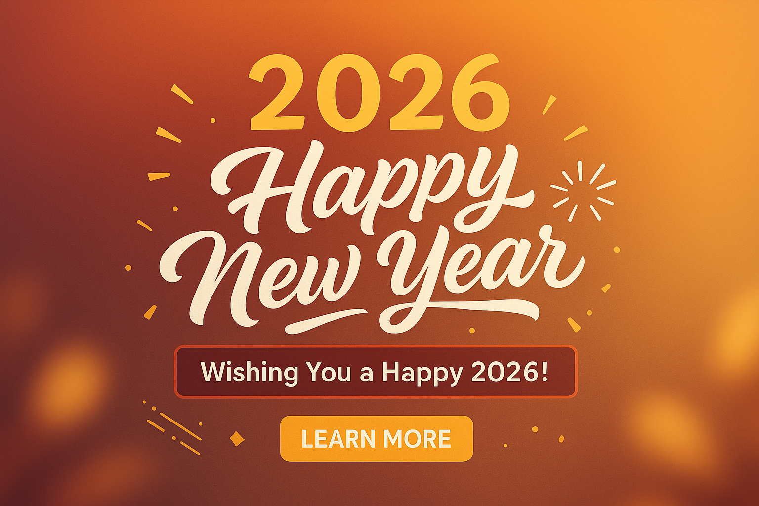 Vibrant New Year greeting card featuring celebratory typography and warm color tones, ideal for holiday promotions or social media posts.